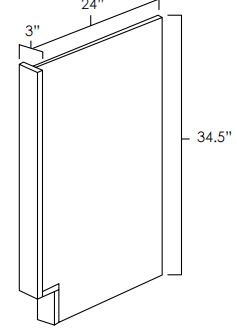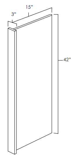 Black Pearl Shaker - Wall End Panel 15"W X 42"H X 3"D. 1/2" Thick Panel With A 3" Wide Wall Filler On The Front. Can Be Trimmed To Desired Height And/Or Width. May Be Used Either Left Or Right.