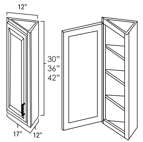 Driftwood Grey - Angled End Wall Cabinets. It Measures 12"W X 12"D X 30"H With Two Adjustable Shelf.