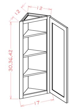 Haven Ember - Angle Wall Cabinets - 12"W X 42"H X 12"D - Cabinet Frame Width Is 17"W