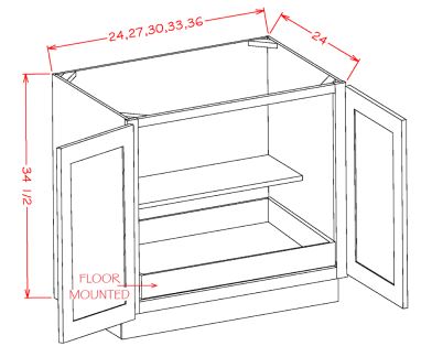 Heritage White Shaker - Base Full Height With 2 Roll Out Shelf-33"W X34-1/2"H X24"D With 2 Door & 2 Rollout Shelf Base Kit