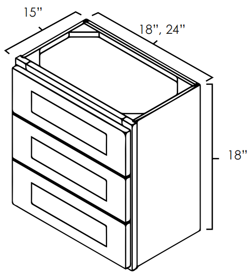 Misty Sage - Three Drawer Wall Cabinets. It Measures 18"W X 15"D X 18"H With 2 Doors. One Standard Height Dovetail Drawer Two Deeper Dovetail Drawers.