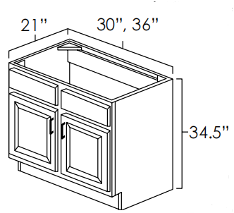Seaside White - Vanity Sink Base Cabinets. It Measures 36"W X 21"D X 34.5"H. There Are No Shelves Or Drawers In These Cabinets Butt Doors On All Three Vanity Sink Base Depth : 21"